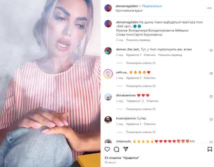 Наприклад, Alena Magdalen запустила сольний проєкт і випускає власні пісні. Судячи зі сторінки в Instagram, яку співачка активно веде, вона живе в Україні та підтримує нашу країну. Також відомо, що днями у виконавиці вийшов трек в аранжуванні Володимира Бебешка.