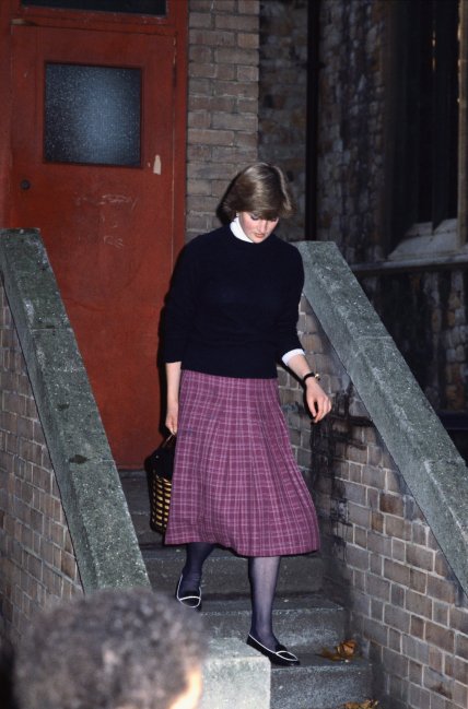 Коли у леді Ді почався роман із принцом Чарльзом, увага до її персони підвищилася в кілька разів. В інтернеті також є фотографія, зроблена на початку 80-х років, коли між ними вже були романтичні стосунки. На кадрі Діана зображена в чорному джемпері та бузковій картатій спідниці, яку доповнила шкіряними туфлями-лоферами.