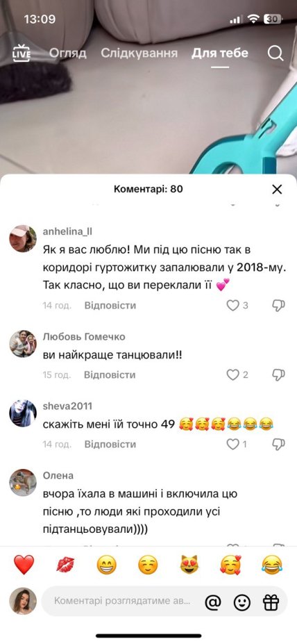 - "Як я вас люблю! Ми під цю пісню так в коридорі гуртожитку запалювали у 2018-му. Так класно, що ви переклали її!";