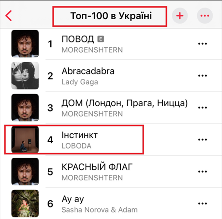 У День всіх закоханих LOBODA презентувала новий україномовний танцювальний трек "Інстинкт", а вже за чотири він потрапив до топ чартів в Україні. Так, за даними, РБК-Україна, пісня посіла четверте місце у Top-100: Ukraine на стримінговому сервісі Apple Music. А в рейтингу пісень, які найбільше слухають у Києві, вона опинилась на другій сходинці.