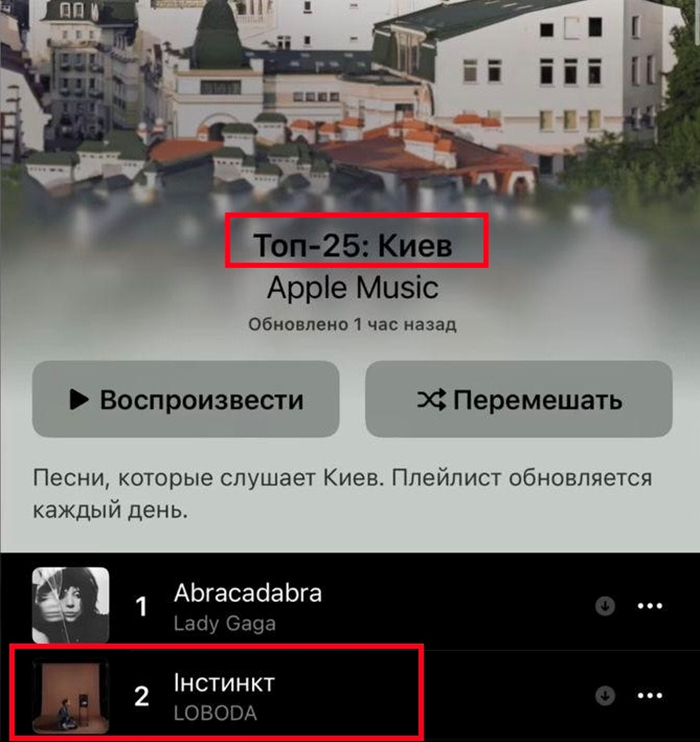 Пісня Світлани Лободи стала єдиним україномовним треком у п’ятірці найбільш популярних в Україні на Apple Music, зазначає видання.