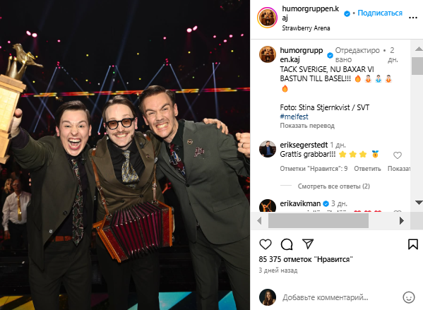 На нацвідборі Melodifestivalen 2025 9 березня обрали переможця. Швецію на 69-му пісенному конкурсі представлятиме гурт KAJ. І вперше з 1998 року Швеція на Євробаченні заспіває шведською.