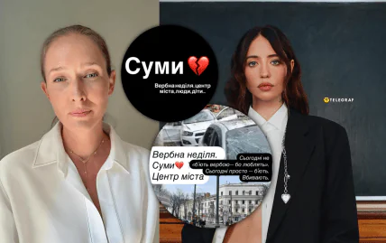 "Вербна неділя в Сумах… Більше 20 загиблих і біля сотні поранених… Горе, страшне горе..Розірвані і спалені людські тіла!!! Просто ПЕКЛО на землі…Нелюди, людожери! Знищення українців триває… А весь світ спостерігає… Сумчани, дорогі люди! Глибокі співчуття сімʼям постраждалих", — написала актриса в Інстаграмі.