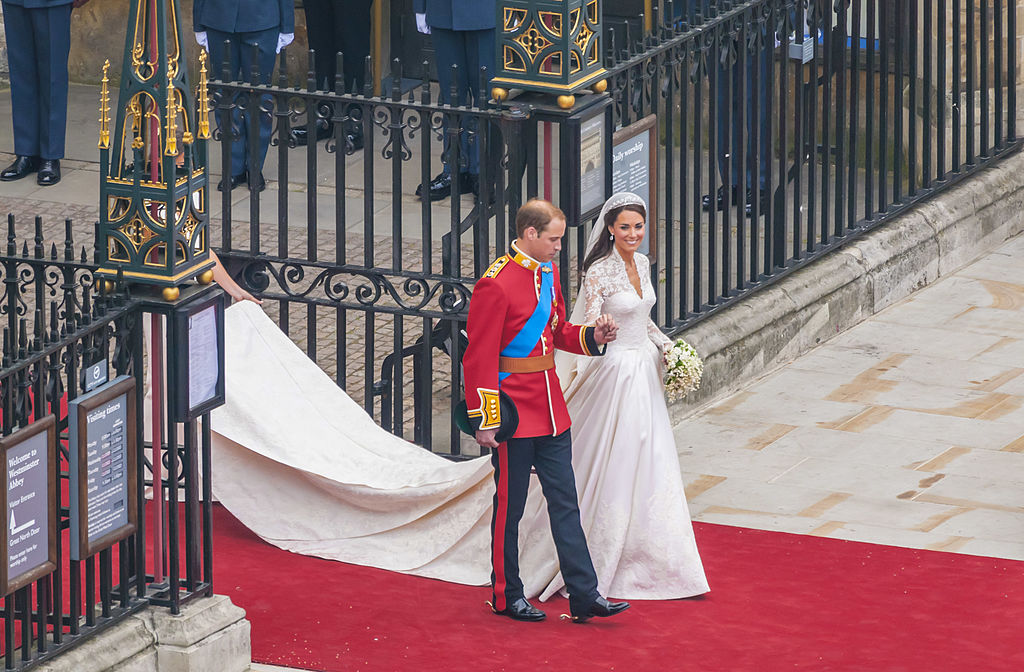 Весільне вбрання герцогині втілювало найкращі традиції британської родини. Рукави її сукні були прикрашені вишуканим мереживом із квітковими символами Великої Британії, а шлейф сягав майже три метри. На голові Кейт Міддлтон була діамантова тіара Cartier Halo, яку їй подарувала королева Єлизавета II. Наречений обрав для церемонії урочисту форму полковника ірландської гвардії, що підкреслювала його звання старшого полковника.