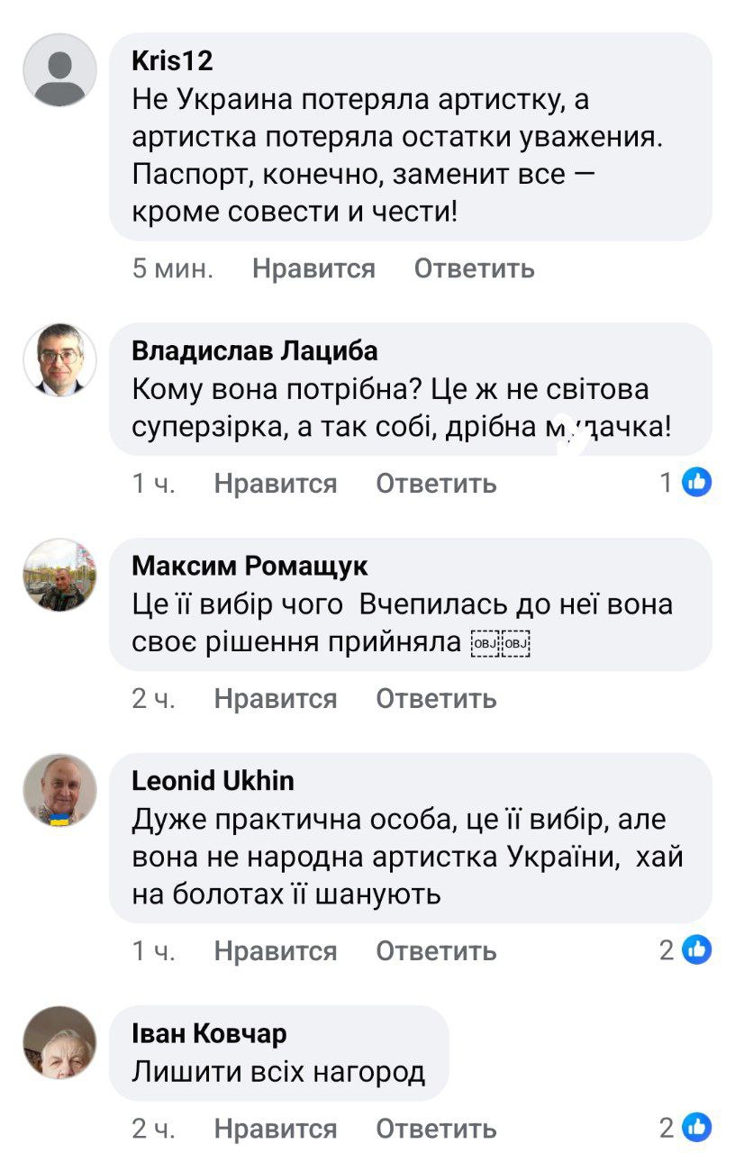 Користувачі зазначають, що це не є великою втратою для України, тому що в нашій країні багато гідних артистів.
