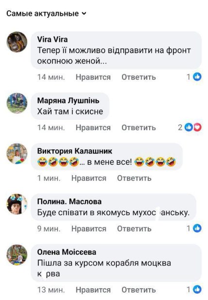 Українці також жартують, що тепер Ані Лорак можна відправити на фронт як окопну дружину. Дехто закликає позбавити її нагород, оскільки Ані Лорак свій зірковий шлях розпочинала в Україні та була дуже популярною.
