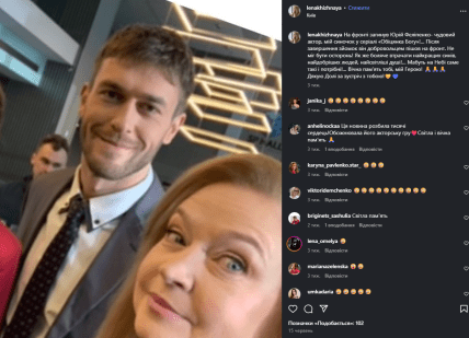 Нещодавно артистка вшанувала пам’ять своїх колег по сцені — зірки ситкому "Коли ми вдома" Тетяни Шеліги, якої не стала 3 липня, і молодого актора, загиблого на війні Юрія Феліпенка.