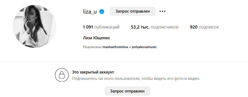 До слова, прізвище чоловіка Лізи Ющенко невідоме. А в соцмережах вона підписана прізвищем колишнього чоловіка. В Інстаграм її фоловеркою є Маша Єфросиніна, яка зізнавалася, що не спілкується з сестрою, і Оля Полякова.
