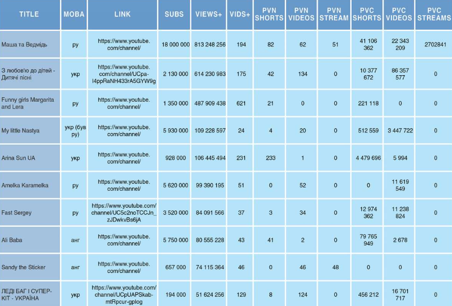 Сьогодні, 25 серпня, стало відомо, що YouTube-канал із мультсеріалом "Маша та Ведмідь", який було створено російською студією Animaccord, але озвучений українською мовою, очолив рейтинг дитячих ютуб-каналів за переглядами в Україні. На цьому мультик країни ворога заробив 2,4 мільйона доларів.