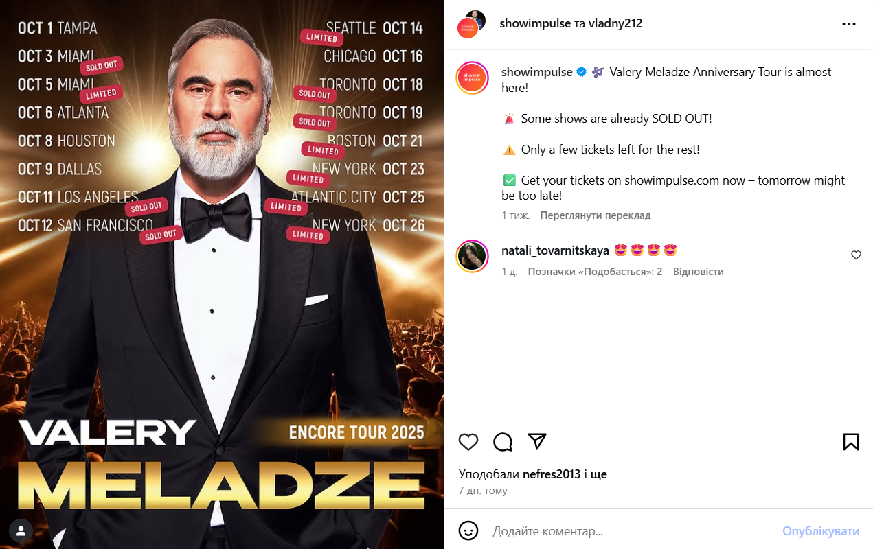 Зазначимо, що йдеться про дві компанії Best Events Europe та Show Impulse, які займаються організацією концертів російських та українських артистів за кордоном та продажем квитків на ці концерти. Важливо уточнити, що компанії працюють лише з "хорошими рускими", тобто артистами, які не підтримують путінський режим.