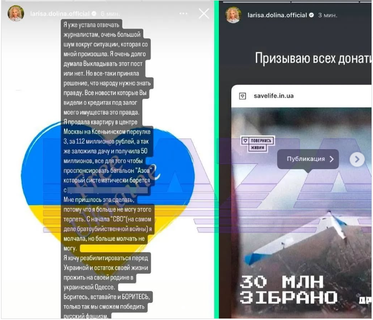 Співачка належить до тих артистів, які не засудили російське вторгнення в Україну, незважаючи на своє одеське походження. Доліна продовжує жити в Москві, виступати для російських глядачів і ходити державними телеканалами на різні шоу.