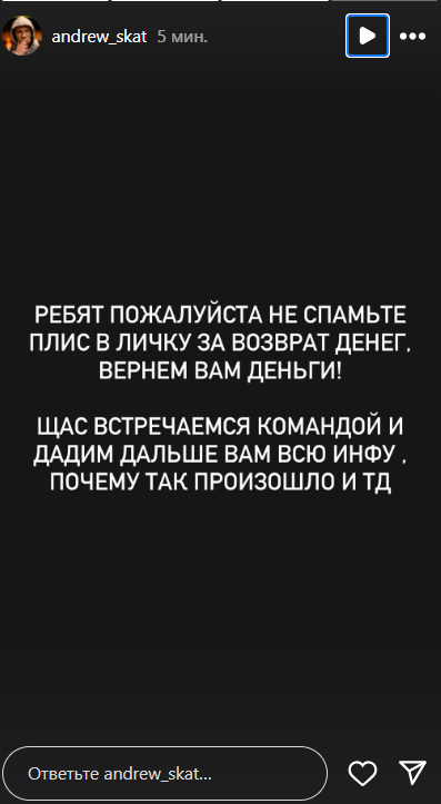 Репер вже встиг відреагувати на скасування концерту на своїй сторінці в Інстаграм. Він виклав сторіс російською мовою і повідомив, що гроші за квитки повернуть.