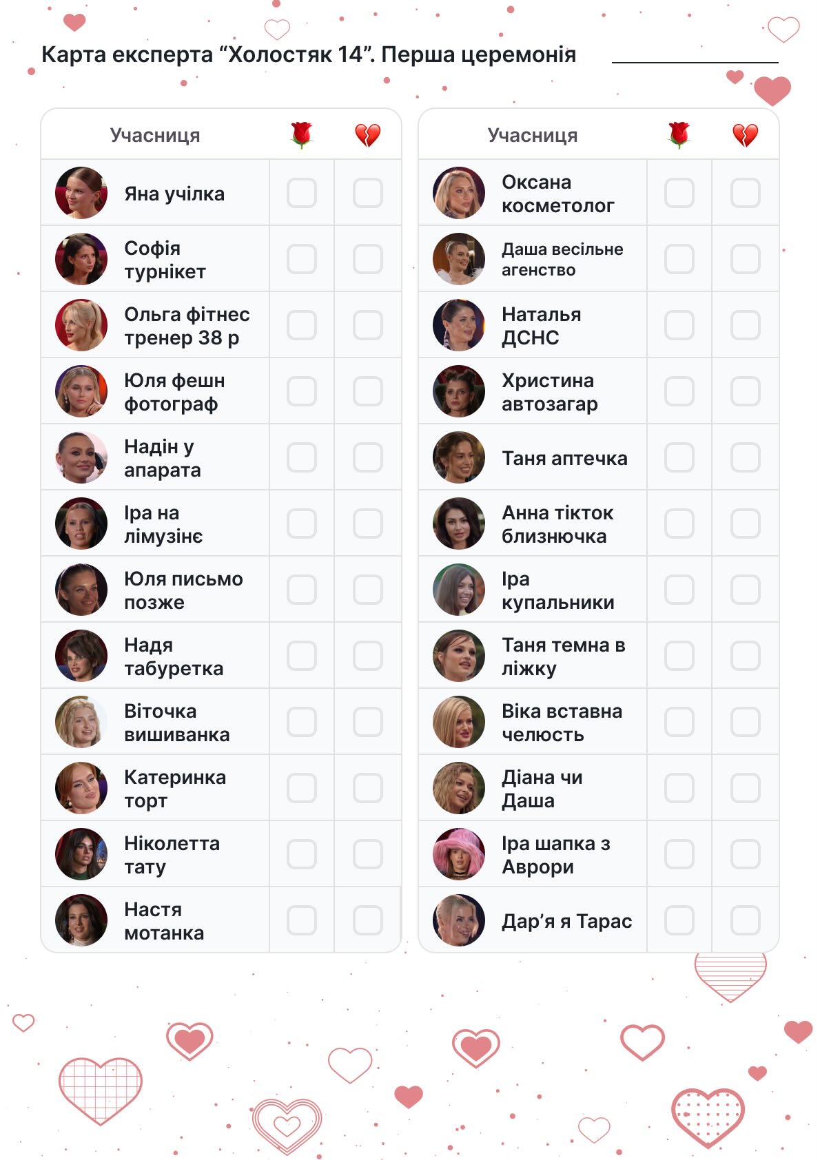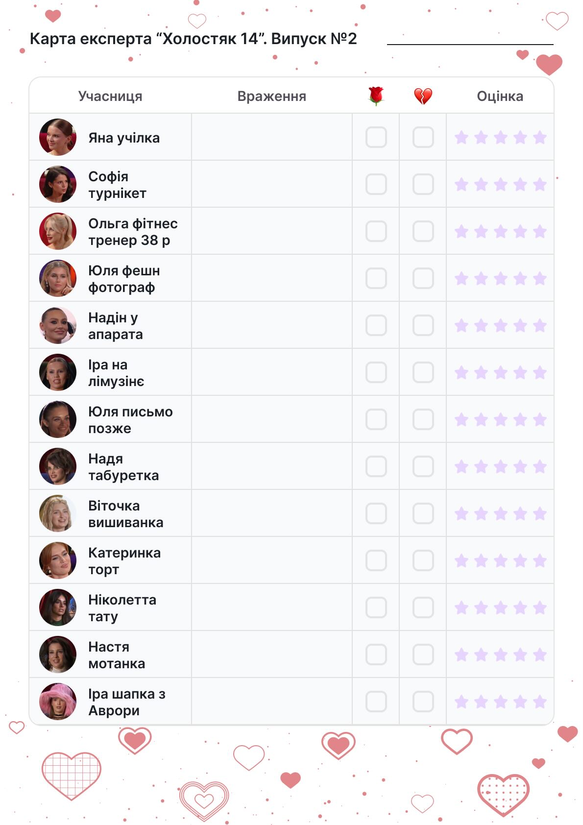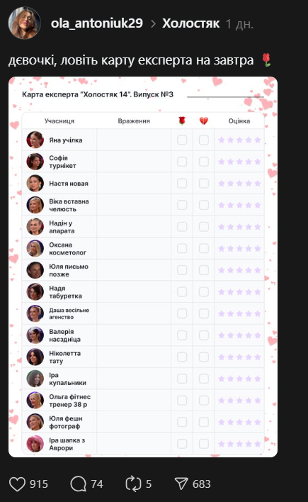- У соцмережах з’явилася "картка експерта" для оцінки учасниць шоу "Холостяк"