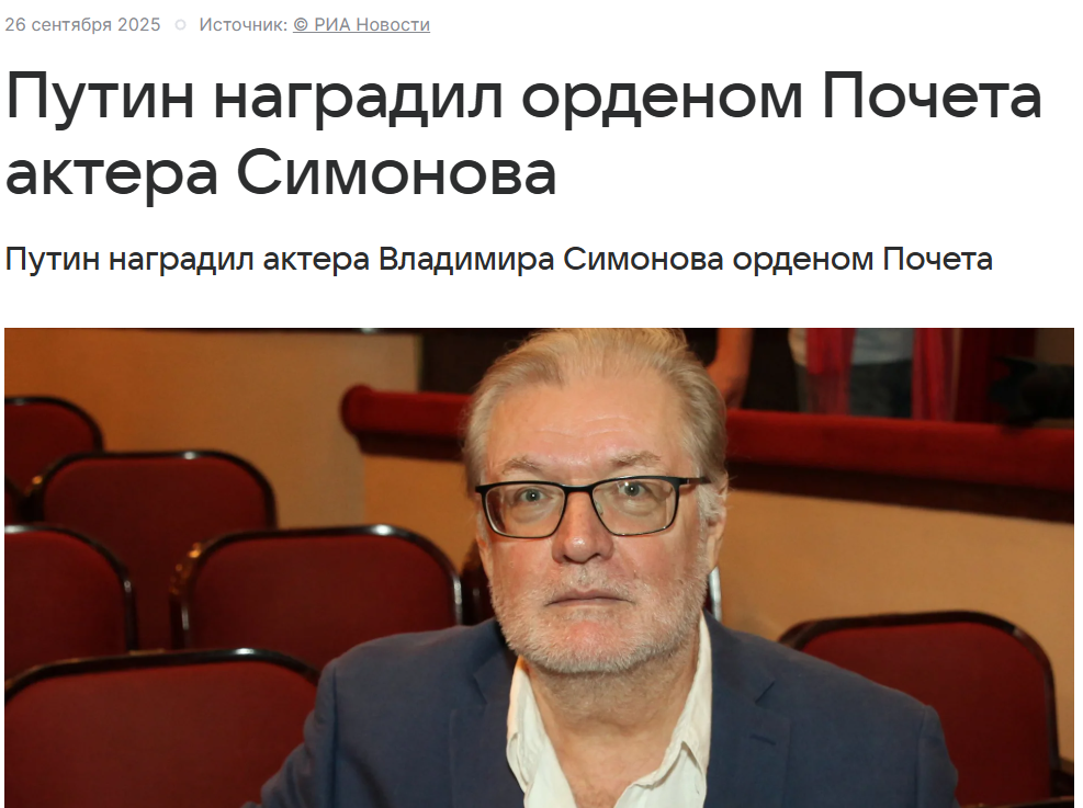 У Росії помер відомий актор Симонов. Він розгнівав українців під час війни