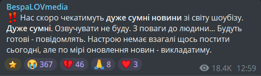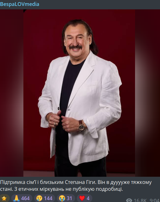 21 листопада блогер-пліткар Богдан Беспалов повідомив у своєму Телеграм-каналі, що 66-річний виконавець перебуває у важкому стані. Але подробиць він не розкривав.