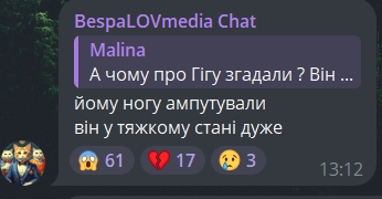 У неділю, 7 грудня, блогер повідомив, що скоро на український шоубізнес чекатимуть погані новини, але деталей не озвучив. Після розпитувань своїх підписників Беспалов написав у коментарях, що Степану Гізі ампутували ногу.