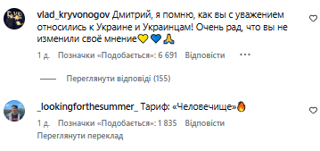 - "Дмитро, я пам’ятаю, як ви з повагою ставилися до України та українців! Дуже радий, що ви не змінили свою думку"