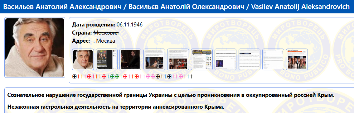 Свою позицію Анатолій Васильєв демонстрував ще до початку повномасштабного вторгнення. У 2018 році він потрапив до бази "Миротворець" за відвідування анексованого Росією Криму, пояснивши це тим, що вважає півострів "російським" й "інакше не може бути".