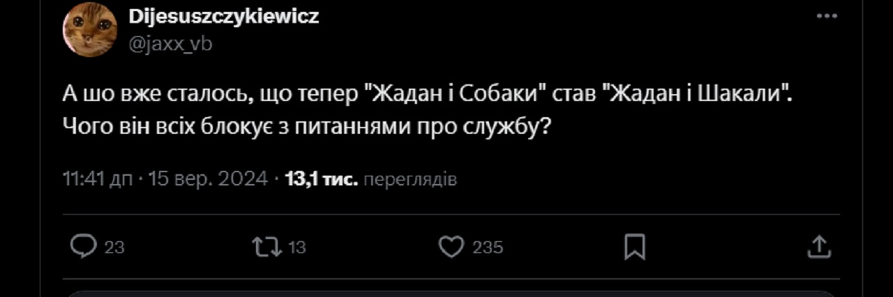 Чи пам'ятаєте ви коментарі під дописами Жадана про війну і службу? Майбуть, ні, бо вони швидко зникають. Багато хто помітив, що будь-який критичний або навіть гумористичний коментар під дописами про його службу майже моментально блокується. Це помітили користувачі соцмережі Х.
