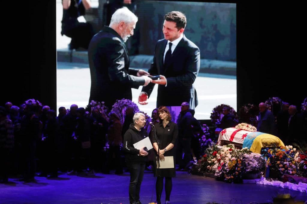 - Його труну прикрашали прапори Грузії та України