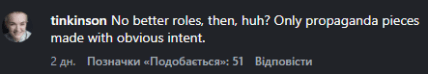 • Нема кращих ролей, так? Тільки пропагандистські твори зроблено з очевидним наміром