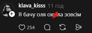 Такий стиль спілкування обурив інших фоловерів. Зокрема, підписник Михайло Попов не стримався і написав артистці: "Олічка, а ти не ах*ела?". Згодом на своїй сторінці у Threads Михайло опублікував скриншоти переписки, заявивши, що після цього остаточно відписався від зірки.