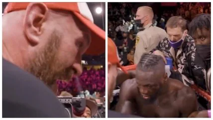 На кадрах видно, як Ф’юрі після перемоги підходить в кут Вайлдера, який тільки-тільки прийшов до тями після важкого нокауту. Тайсон хотів дізнатися про стан справ американця і висловив тому "респект", проте у відповідь "Бронзовий бомбардувальник" лише повторював: "Я тебе не поважаю". Додамо, що британець відразу ж після поєдинку поскаржився на Деонтея через це.