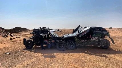 Російський гонщик Сергій Карякін та його штурман Антон Власюк зіштовхнулися лоб у лоб з ще одним учасником ралі-марафону "Дакар-2022".