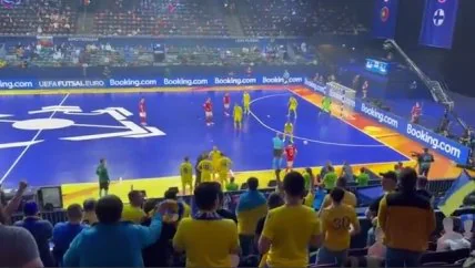 Українські вболівальники завзято підтримують своїх футзалістів у матчі з росіянами
