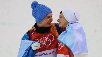 Український фрістайліст Олександр Абраменко після завоювання срібної медалі на Олімпійських іграх у Пекіні взяв участь у церемонії нагородження, де зробив спільне фото з призерами у лижній акробатиці росіянином Іллею Буровим та китайцем Гуанпу Ці.