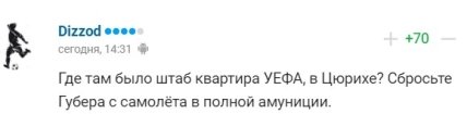 У мережі висміяли заяву Губернієва. Один з користувачів навіть спитав, чи росія наважиться на удар по Цюриху (штаб-квартира ФІФА, — ред.).