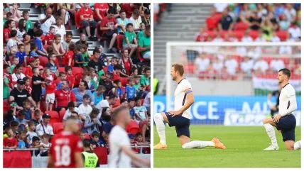 Англійські футболісти традиційно перед іграми схиляють коліно. У такий спосіб вони привертають увагу до проблеми расизму. На стадіон імені Ференца Пушкаша у Будапешті не оцінили цей жест та почали освистувати гравців. Примітно, що арена переважно була заповнена дітьми до 14 років. Восени угорські фанати ображали англійських футболістів на расовому ґрунті під час матчу відбору на ЧС-2022 (0:4 на користь британців). За це ФІФА покарала збірну двома матчами без глядачів та великим штрафом. Угорці обійшли заборону на порожні трибуни, заповнивши арену дітьми. У результаті поведінка угорських дітлахів може призвести до чергових санкцій для національної команди.