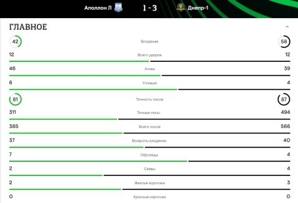Перемогу "Дніпру-1" принесли точні удари півзахисника Валентина Рубчинського та форварда Артема Довбика (дубль). До речі, всі голи наша команда оформила у командному стилі, футболісти не скупилися і виводили партнерів на ударні позиції, звідки дуже важко промазати. У складі "Аполлона" гол престижу оформив Янніс Піттас, який, до речі, відзначився з офсайду. У матчах Ліги конференцій немає VAR, через що виправити помилку рефері неможливо.