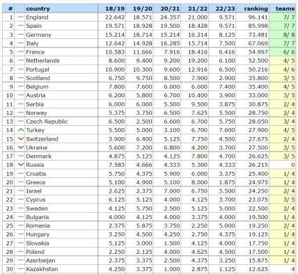 Такий невиразний виступ наших команд позначився на таблиці коефіцієнтів УЄФА. Україна втратила одну позицію, нас пройшла Туреччина. Це погано, оскільки з 16-го місця країна втрачає одного представника у Лізі чемпіонів та Лізі Європи.