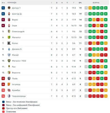 Турнірна таблиця