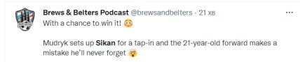 На 71-й хвилині поєдинку за рахунку 1:1 "Шахтар" організував швидку контратаку, "мотором" якої став Михайло Мудрик. Головна зірка "Гірників" зробив пас на 21-річного Сікана, який в дотик пробив повз ворота. Коментатор зазначив, що такі промахи бувають лише раз у кар’єрі.
