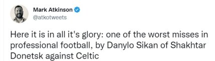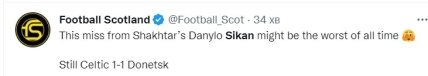 Відео промаху Сікана в матчі Ліги чемпіонів "Селтік" — "Шахтар":