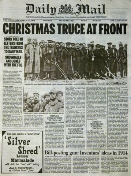 А на Різдво солдати з обох боків вийшли на нейтральну смугу, щоб зіграти футбольний матч.