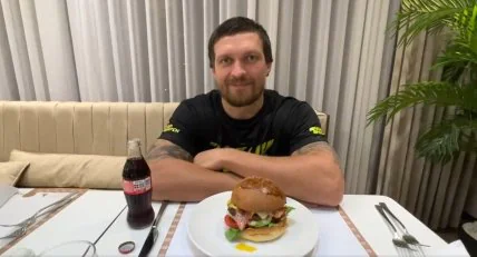 На зборах у Туреччині Усик записав кумедне відео. Боксер сидить за столом і їсть величезний бургер.