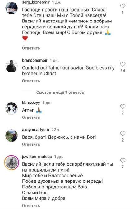 Зазначимо, сторінка Ломаченка заблокована в Україні, а тому більшість коментарів там залишають росіяни. Російські користувачі захоплено зустрічають кожен новий пост українця, а один із користувачів подякував спортсмену за те, що той пише не українською мовою.