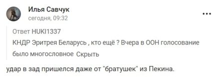 У мережі лише посміялися з російського МЗС. Навіть росіяни розуміють, що рф у світі підтримують лише кілька країн. Крім того, в мережі зазначили, що Китай, вперше підтримавши резолюцію ООН, де росію називають агресором, завдав рф "удар під зад".