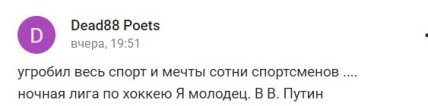 Вагомий внесок у цю значну, масштабну роботу робить Нічна хокейна ліга, яка пройшла перевірку часом і довела свою потрібність", — заявив путін.