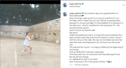 Зворушливий пост тенісистки з’явився на її сторінці в Instagram. Ангеліна прикріпила до нього свої дитячі фото. Спортсменка розповіла, що російські окупанти спочатку захопили її рідне місто, а згодом зруйнували його.