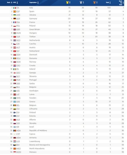 Медальний залік Європейських Ігор доступний на офіційному сайті турніру.