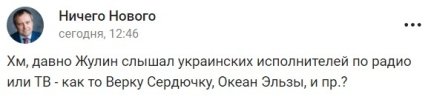 "Повний абсурд. Програма була поставлена, і нічого такого там немає. Рокові виконавці німецькі. Ну й? Не треба йти стопами наших українських товаришів і забороняти культуру. Як там – Пушкіна, Чайковського, Гоголя і так далі. Це маячня", — сказав Жулін.