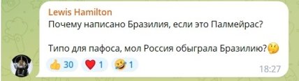 "Матч ТВ" у себе в соцмережах опублікував відео третього гола у виконанні Дмитрієва. На кадрах видно графіку, яка говорить про те, що йде трансляція матчу збірної росії зі збірною Бразилії, хоча це не так. Таким чином, російський телеканал просто ввів в оману глядачів, які далекі від футболу.