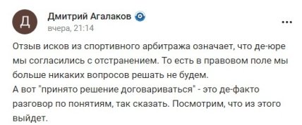 "Усі федерації, які подавали позови, відкликали їх. Було ухвалено рішення домовлятися, ніж сперечатися", — сказало джерело.