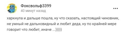 У мережі розкритикували слова Вяльбе. Один із користувачів назвав її заяву "іспанським соромом", а другий порівняв її з путінським чиновником через її недалекоглядність і любов до "діда".