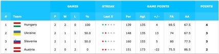 Таким чином одноосібним лідером групи з двома перемогами у активі є команда Угорщини, другу позицію, маючи кращий баланс забитих та пропущених, посідає наша збірна. Третя – Словенія, замикають турнірку австрійці з двома поразками в пасиві.