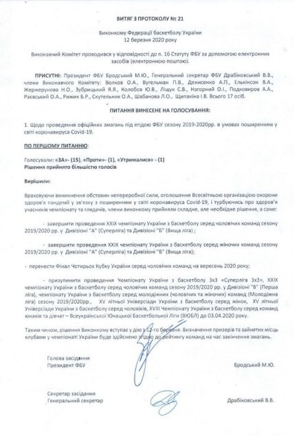 Рішення Виконкому вступає в силу 12 березня. Визначення призерів і зайнятих місць в чемпіонаті України буде зроблено відповідно до рейтингу команда на момент закінчення змагань.